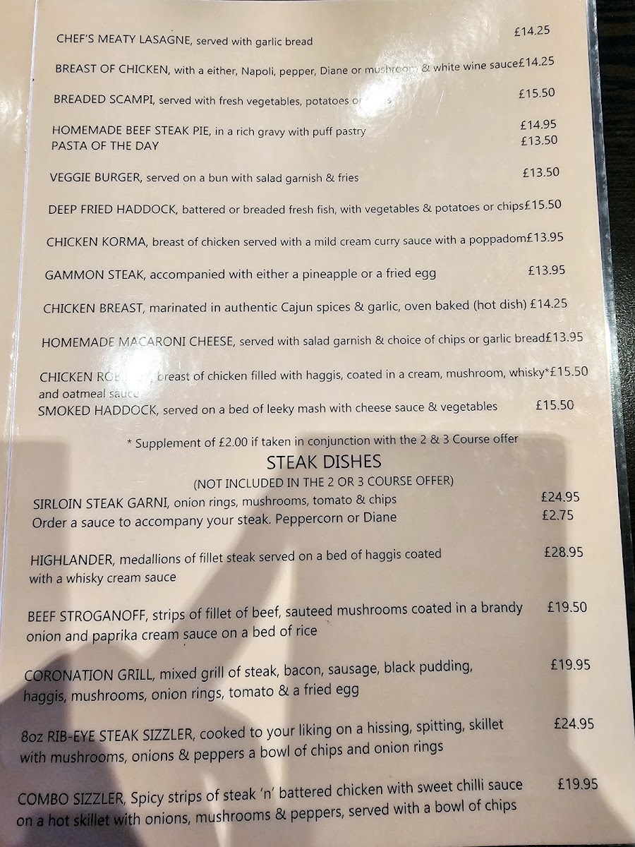 The Coronation Restaurant Menu