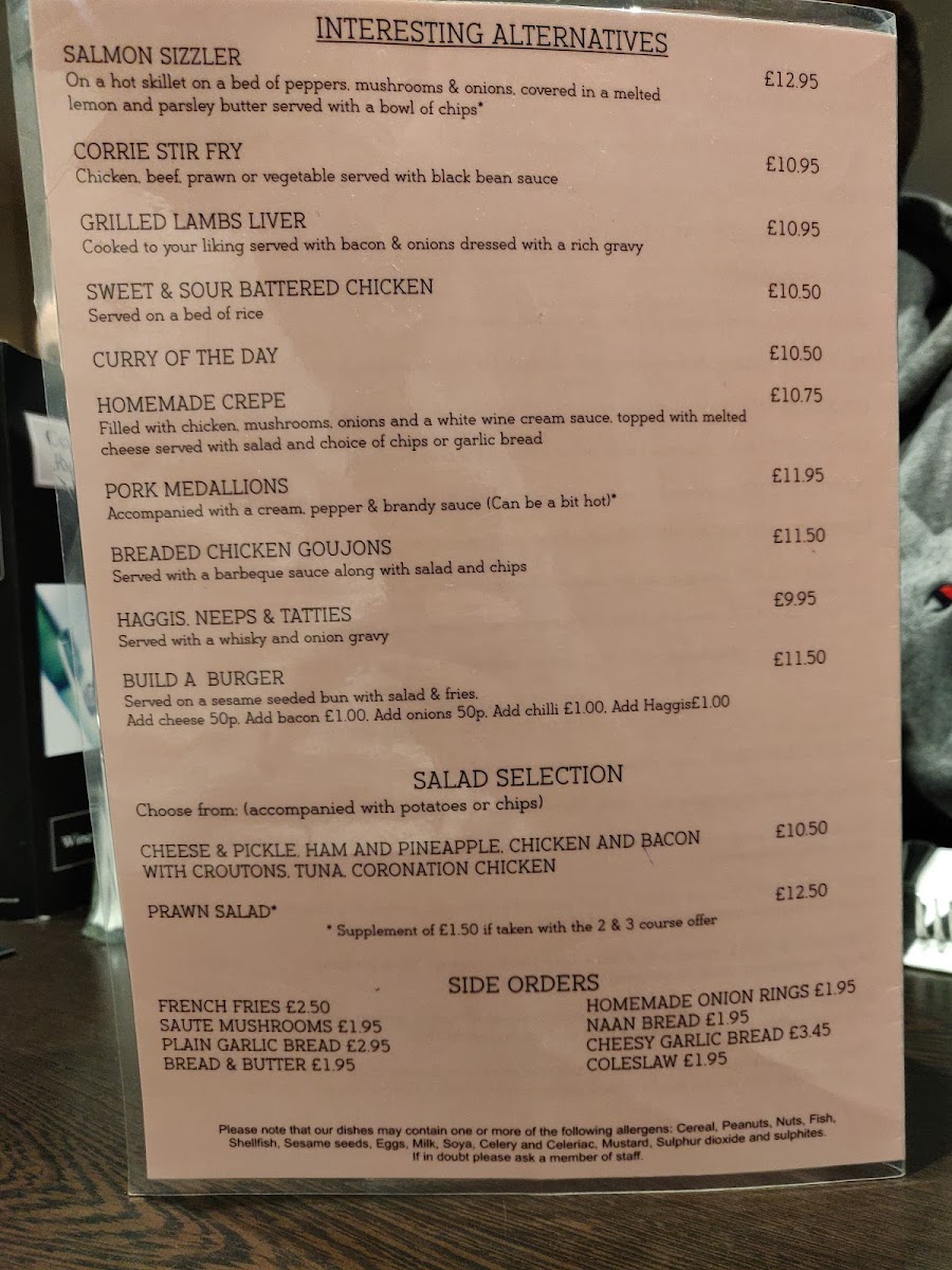 The menu suits a variety of mealtimes—from leisurely lunches featuring dishes like breaded scampi or macaroni cheese, to fuller dinners where options like chicken korma or chef’s meaty lasagne come into their own. A thoughtful array of sides, including homemade onion rings and cheesy garlic bread, complements the mains without fuss.
